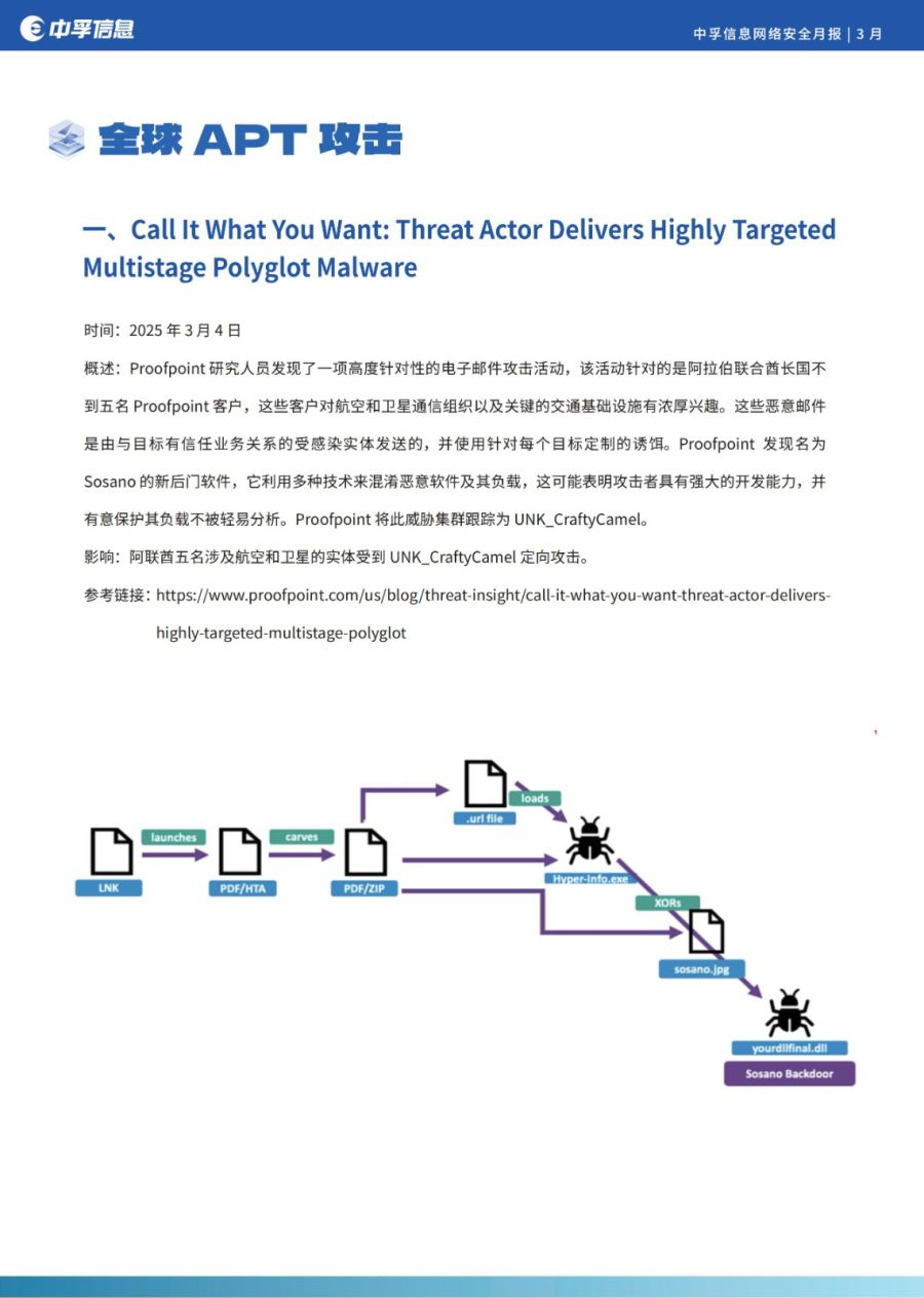 其中,地缘政治冲突仍是APT组织的首要攻击背景,与之相关的攻击活动非常活跃,分别有:Call It What You Want: Threat Actor Delivers Highly Targeted Multistage Polyglot Malware; Lookout Discovers New Spyware by North Korean APT37; SideWinder targets the maritime and nuclear sectors with an updated toolset等。